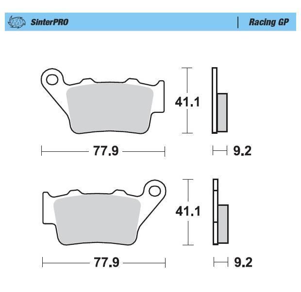 SinterPRO Serie Racing GP Compound: Moto Master High end MX racing pad for professional use, the special sinter mix combines maximum stopping power with high temperature resistance to eliminate any possible brake fade. Its high initial bite and linear feel allow aggressive and controlled deceleration. Equipped with NRS technology which provides a constant pressure point all through the brake pad lifecycle.
