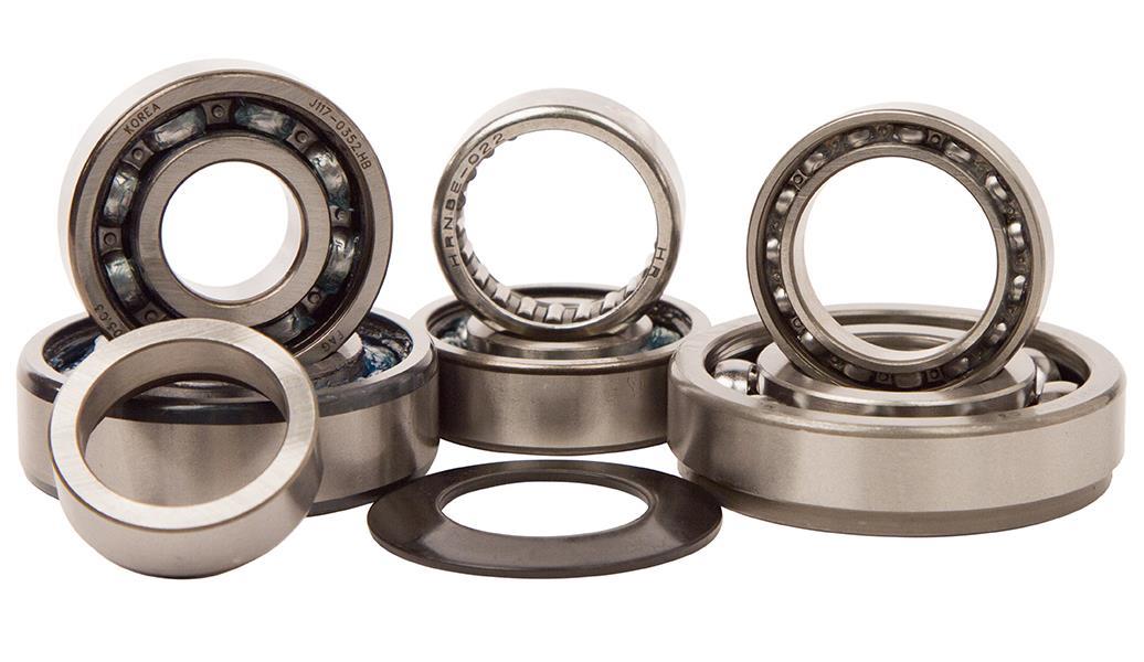 The kit includes bearings for the primary shaft, secondary shaft and shift drum shafts.