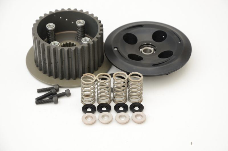 TSS has developed a range of components and clutch complete. With the slipper clutch group, you get a clear improvement in behavior on the brakes. The principle has been successfully adopted on Ducati and Japanese bikes for road and off-road. The result is a wide range groups effective, lightweight and easy to assemble. For what concerns the possibility of adjustment of the device by the customer, for groups TSS are supplied to part of the "little sheets" that allow to choose the level of preload of the springs of the pressure plate. These units are supplied without the clutch plates. They are designed to be able to use the original disks. Alternatively we can provide Aftermarket clutch plates.