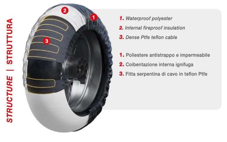Thermography shows how Capit’s technology offers better performance thanks to the TEFLON heating cable, unlike all the other brands of tyre warmers that use silicone. No Capit tyre warmer, in fact, is susceptible to accidental crushing of the car or motorcycle.