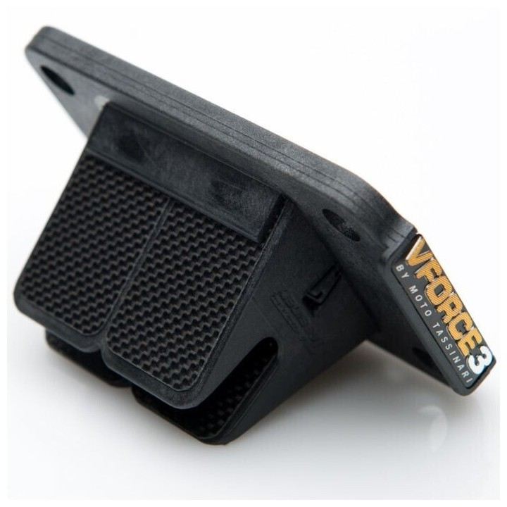 The VForce3 reed valve system by Moto Tassinari incorporates features you won't find with other system on the market. With such features as twice the reed tip surface, radius cage surface and more. By doubling the reed tip surface (over a stock standard valve design) the petals now only need to open half as far to provide the same flow as a stock style cage. This is a significant advantage when you factor in that a reed petal opens and closes 133 times per second at 8,000 rpm. The petals are only traveling half the distance of a stock style cage, so now fatigue to the petal has been greatly reduced, increasing petal life. To find out what else makes the VForce3 superior please read below.