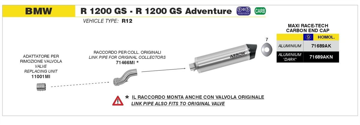 SCHEMA DI MONTAGGIO: nelle foto fare riferimento allo SCHEMA DI MONTAGGIO della propria moto (indicato in alto a sinistra: Modello - Euro - Vehicle Type) e al codice prodotto 11001MI.