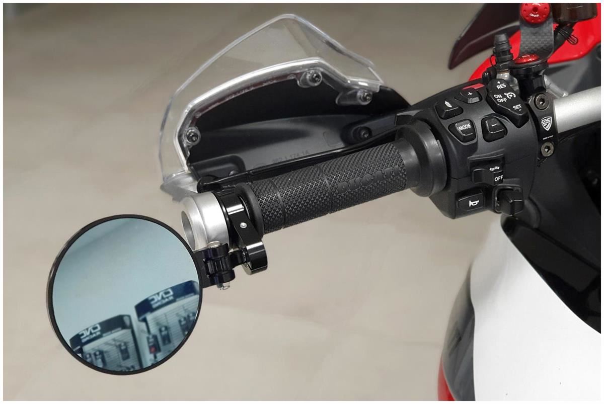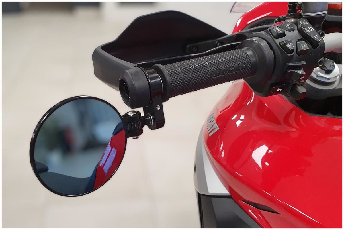 L'adattatore permette il montaggio degli specchi bar-end Rocket ed EVO sui paramani originali della Ducati Multistrada V4 e DesertX