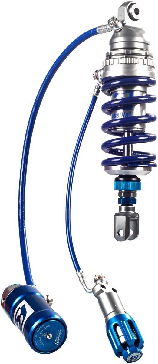 Il precarico molla a comando idraulico tramite un comodo pomello a scatti permette di regolare il precarico della molla in ogni momento e senza bisogno di attrezzi, in funzione delle condizioni del carico e dello stile di guida. Il pomello può essere integrato al corpo oppure collegato tramite tubo flessibile.