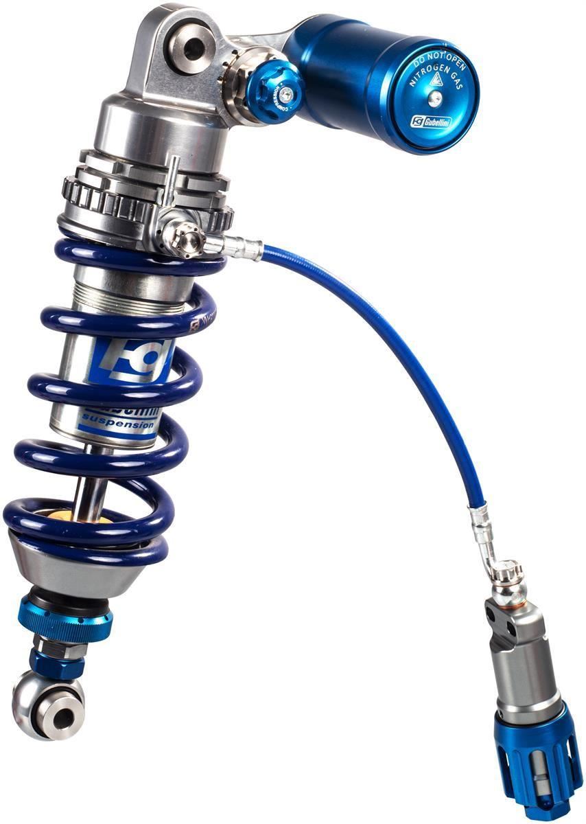 Il precarico molla a comando idraulico tramite un comodo pomello a scatti permette di regolare il precarico della molla in ogni momento e senza bisogno di attrezzi, in funzione delle condizioni del carico e dello stile di guida. Il pomello può essere integrato al corpo oppure collegato tramite tubo flessibile.