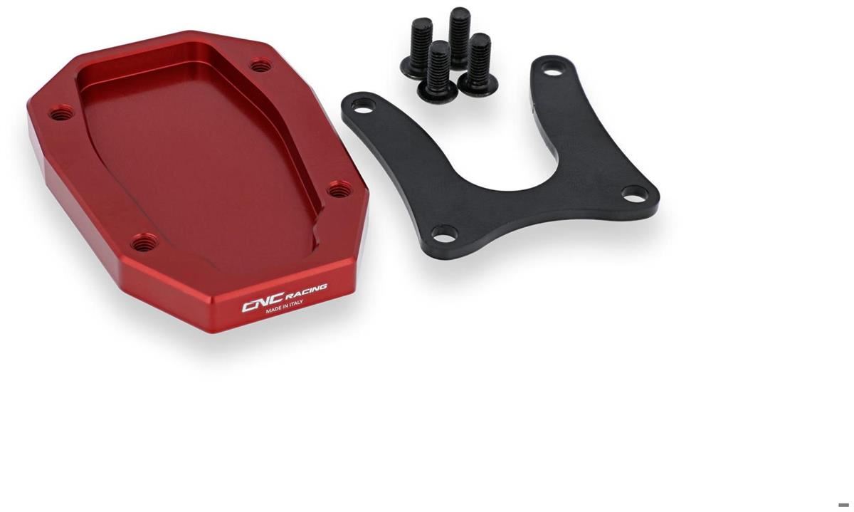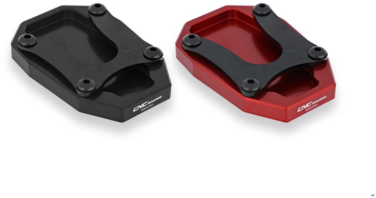 Base appoggio cavalletto realizzata dal pieno in lega leggera con successiva anodizzazione superficiale. Realizzata per allargare la superficie di appoggio del cavalletto laterale originale e rendere la moto più sicura durante la sosta.