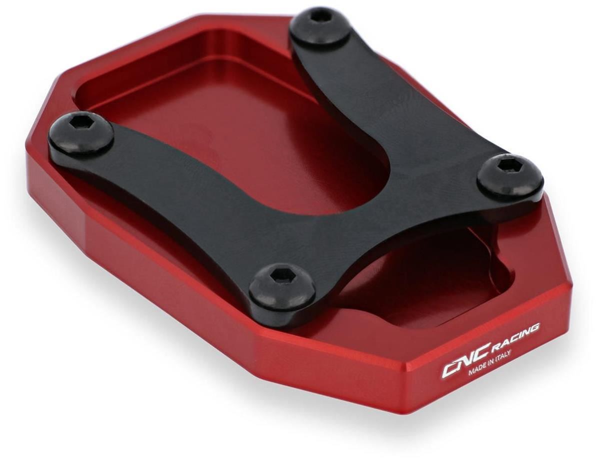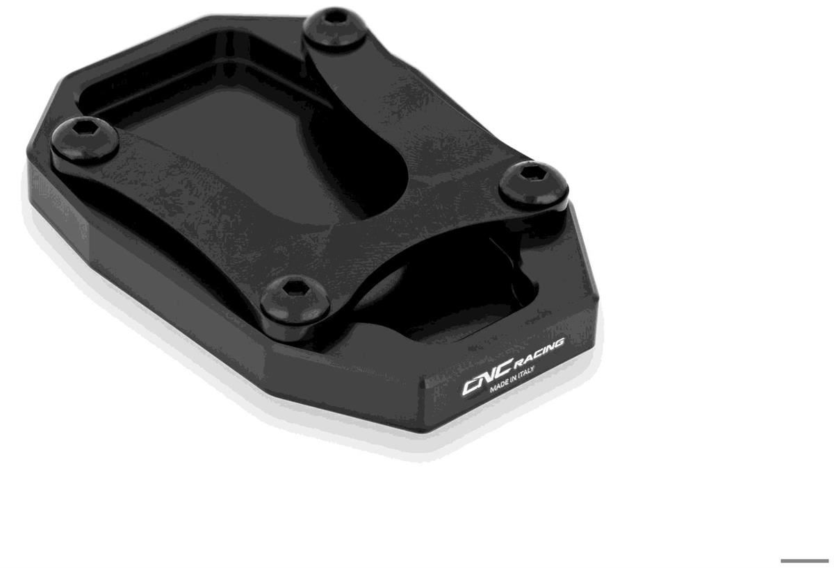 Base appoggio cavalletto realizzata dal pieno in lega leggera con successiva anodizzazione superficiale. Realizzata per allargare la superficie di appoggio del cavalletto laterale originale e rendere la moto più sicura durante la sosta.