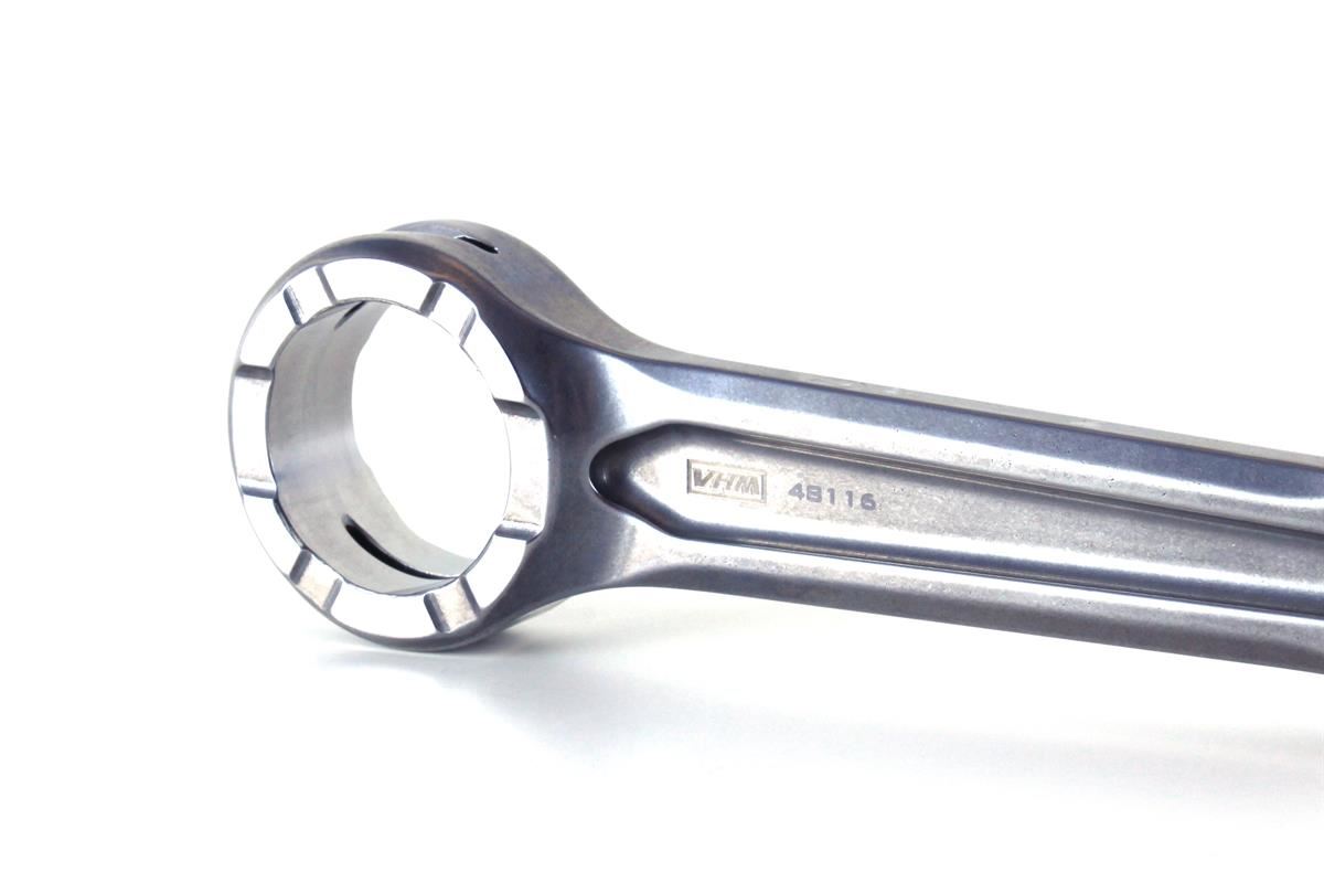 Attraverso il freno motore, il foro standard dell'estremità di biella della biella deforma l'ovale di 0,015-0,02 mm, mentre la nostra biella VHM si deforma solo di 0,005 mm (a causa del materiale ad alta resistenza). Inoltre, questa biella è anche super rifinita, il che garantisce una superficie liscia. Questo aiuta a prevenire piccole fratture nel materiale.