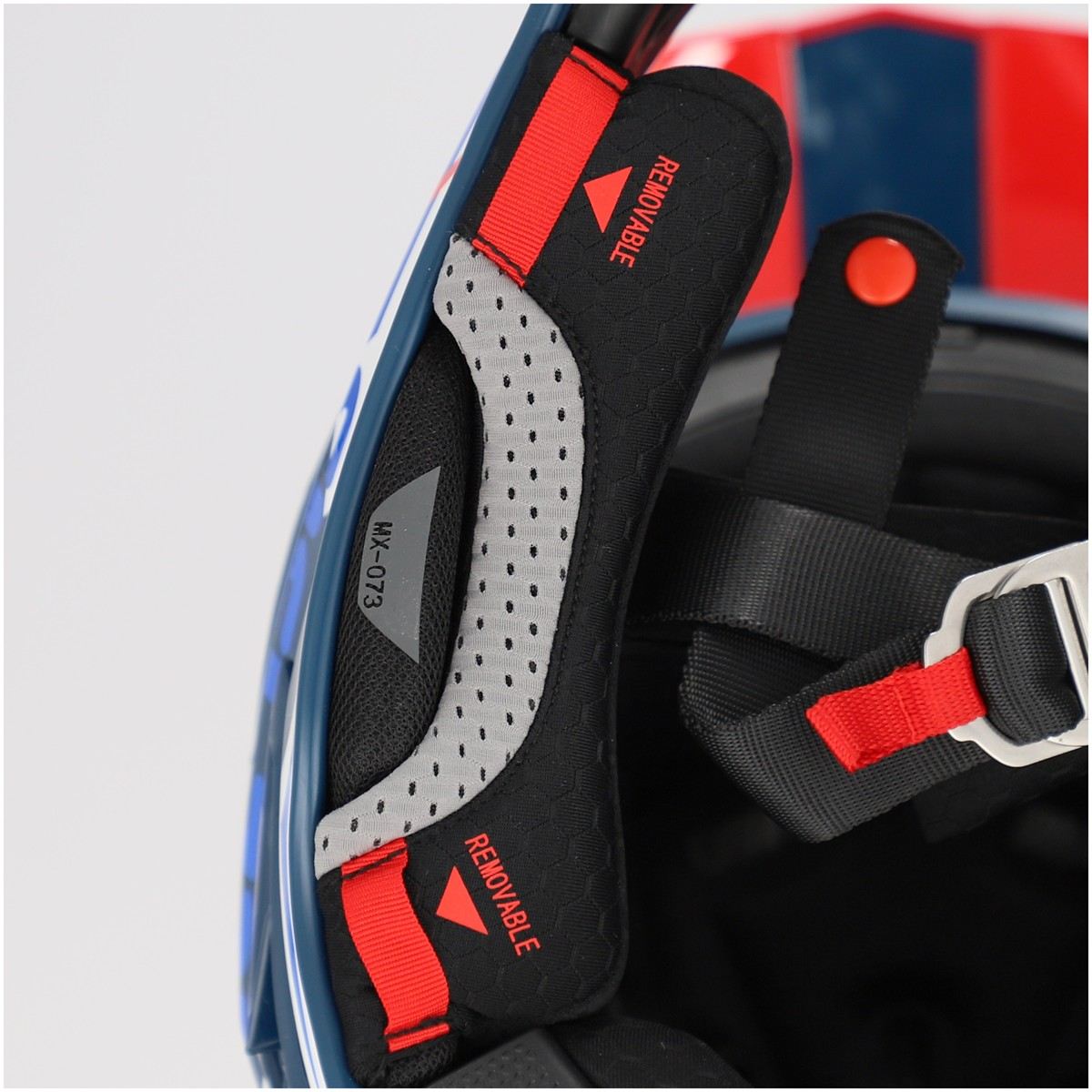 Le prese d'aria sono rimovibili per una facile pulizia, mentre la visiera è fissata senza viti per un design più aggressivo e funzionale. L'apertura frontale garantisce un ottimo campo visivo. Gli interni sono ipoallergenici, traspiranti e lavabili, con guanciali facilmente rimovibili e dotati di sistema Quick Release per rimuoverli in caso di emergenza.