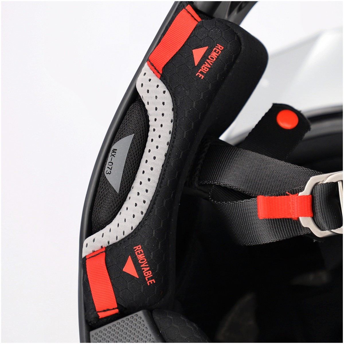 Le prese d'aria sono rimovibili per una facile pulizia, mentre la visiera è fissata senza viti per un design più aggressivo e funzionale. L'apertura frontale garantisce un ottimo campo visivo. Gli interni sono ipoallergenici, traspiranti e lavabili, con guanciali facilmente rimovibili e dotati di sistema Quick Release per rimuoverli in caso di emergenza.