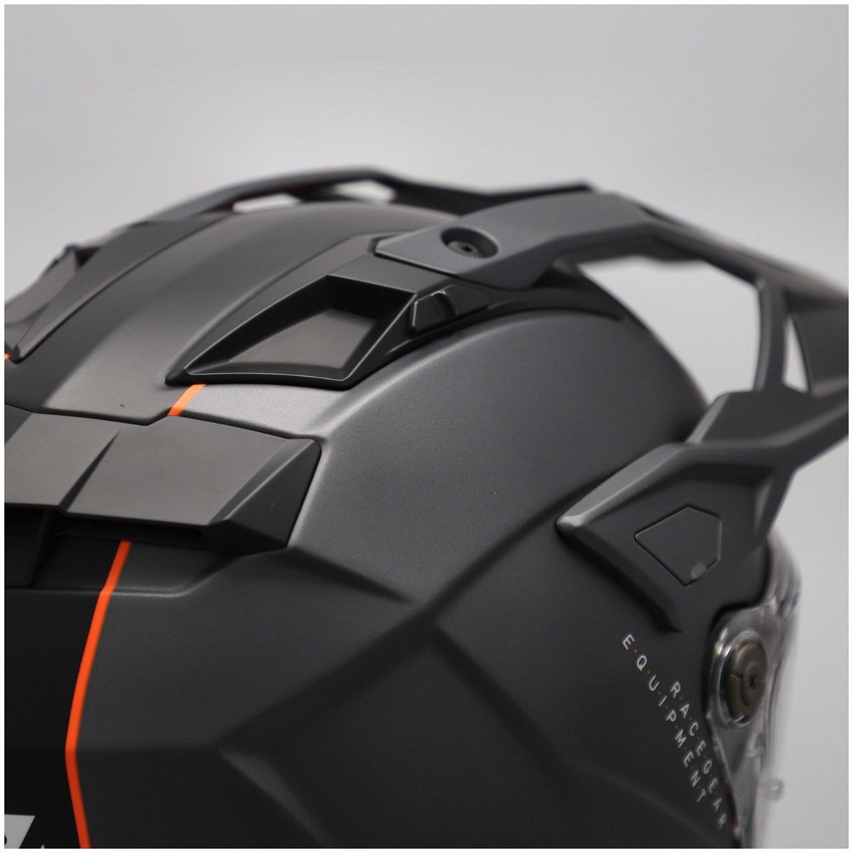 Il design aerodinamico del casco è stato sviluppato per minimizzare la resistenza all'aria, contribuendo a una guida più fluida e stabile anche a velocità elevate. Un enorme passo in avanti è stato fatto grazie al frontino aerodinamico innovativo, fissato in 4 punti invece dei tradizionali 3, questo garantisce la massima robustezza e stabilità, in qualsiasi circostanza.