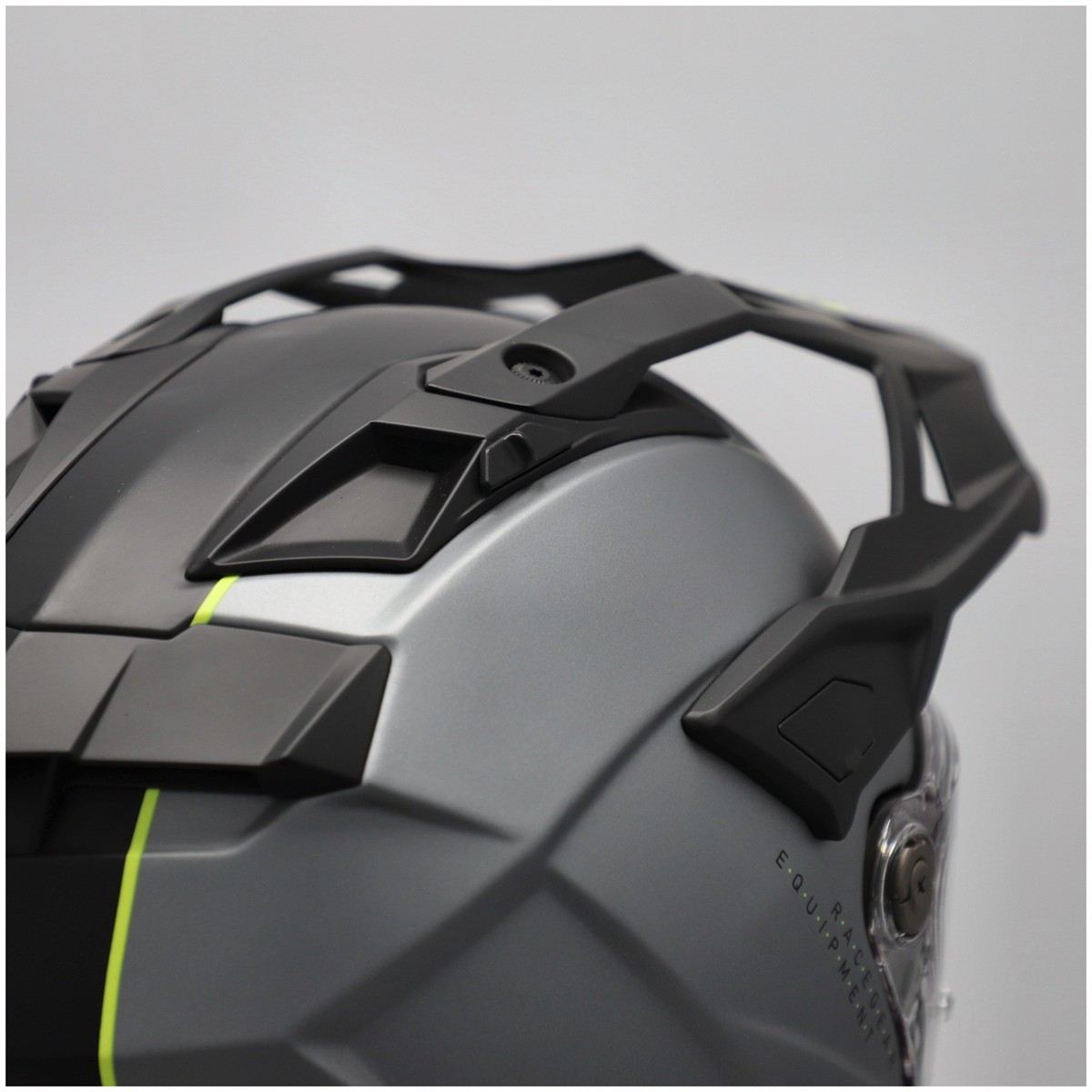 Il design aerodinamico del casco è stato sviluppato per minimizzare la resistenza all'aria, contribuendo a una guida più fluida e stabile anche a velocità elevate. Un enorme passo in avanti è stato fatto grazie al frontino aerodinamico innovativo, fissato in 4 punti invece dei tradizionali 3, questo garantisce la massima robustezza e stabilità, in qualsiasi circostanza.