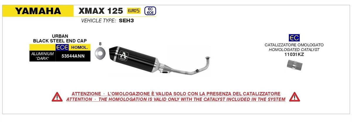 SCHEMA DI MONTAGGIO: nelle foto fare riferimento allo SCHEMA DI MONTAGGIO della propria moto (indicato in alto a sinistra: Modello - Euro - Vehicle Type) e al codice prodotto 11031KZ.