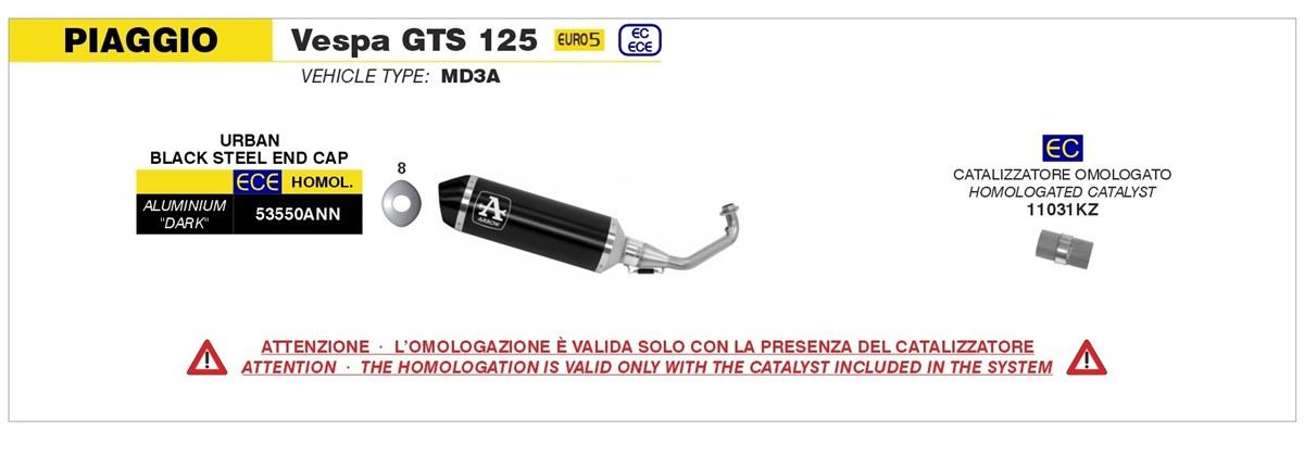 Omologazione gas scarico: SI - Reg. 134/2014 ann. 10 (EC-UE) - EURO4/EURO5/EURO5+ *