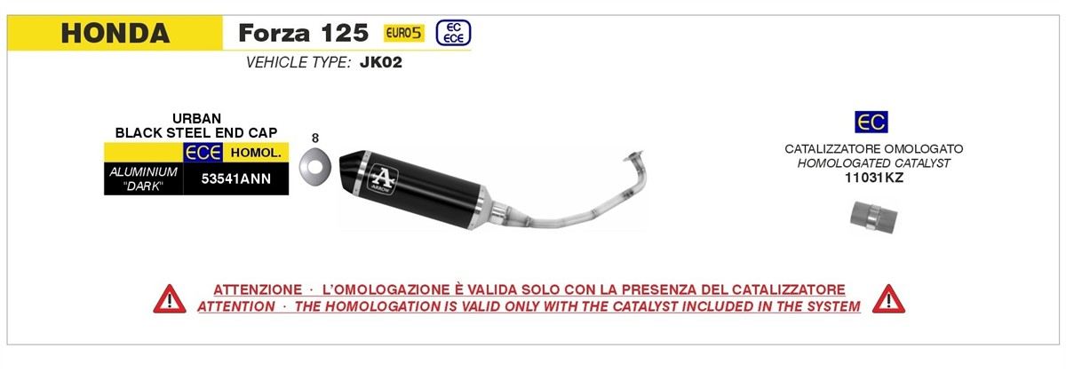 SCHEMA DI MONTAGGIO: nelle foto fare riferimento allo SCHEMA DI MONTAGGIO della propria moto (indicato in alto a sinistra: Modello - Euro - Vehicle Type) e al codice prodotto 11031KZ.
