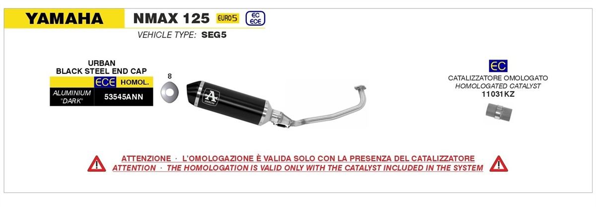 Omologazione gas scarico: SI - Reg. 134/2014 ann. 10 (EC-UE) - EURO4/EURO5/EURO5+ *