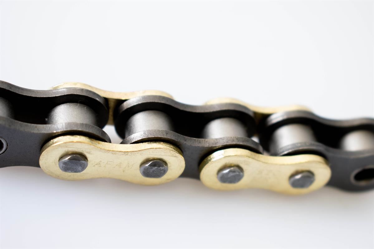 Questa catena è il modello base di AFAM per motocross.Ideale per gli utenti amatoriali e semi-professionali, questa catena è comunque di ottima qualità, con boccole e rulli forgiati per una eccellente resistenza all'usura