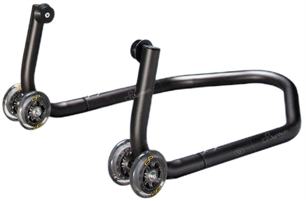 Tutti i cavalletti Lightech vengono utilizzati dai più importanti team nel Motomondiale e nel Mondiale SBK. Sono realizzati con delle quote di lunghezza e larghezza che rendono veramente minimo lo sforzo per sollevare la moto, sono resistentissimi. Dotato di ruote in gomma per rendere la sosta moto stabile e sicura.