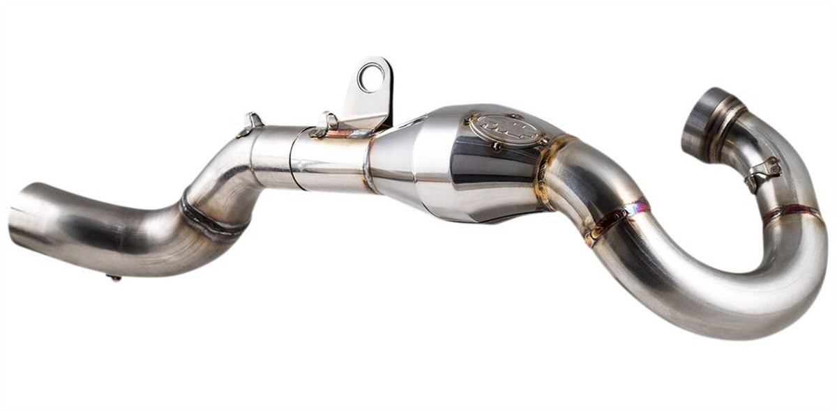 MegaBomb HeaderThe ultimate power booster Improved bottom to mid-range power Produce the low end of a longer header and the top end of a short header Less susceptible to damage than a long header Effectively reduces sound output by as much as 1.5 dB Run well with sound-restricting mufflers Available in stainless steel or FMF's exclusive Ti-Metal construction