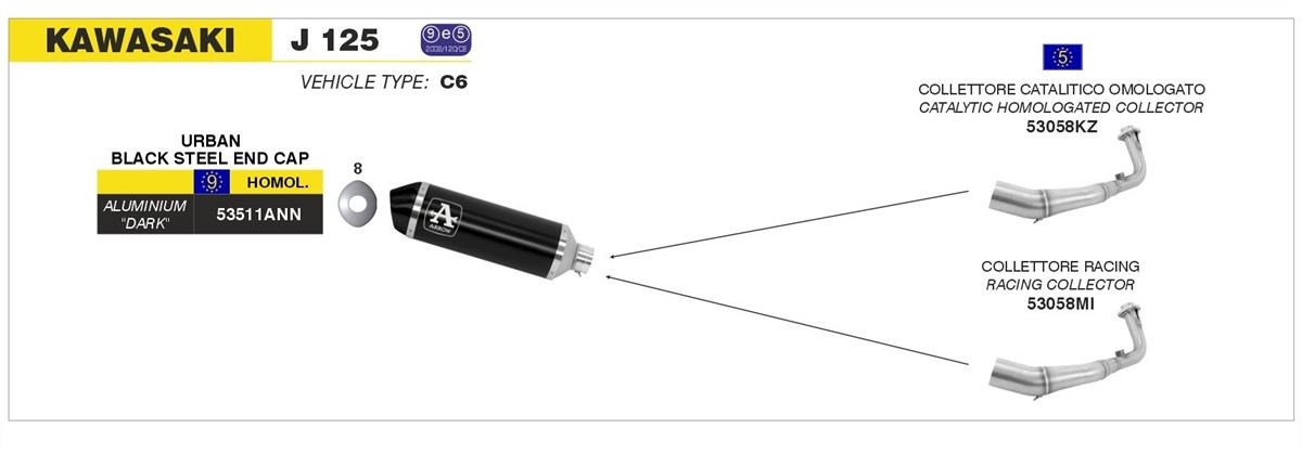 SCHEMA DI MONTAGGIO: nelle foto fare riferimento allo SCHEMA DI MONTAGGIO della propria moto (indicato in alto a sinistra: Modello - Euro - Vehicle Type) e al codice prodotto 53058KZ.