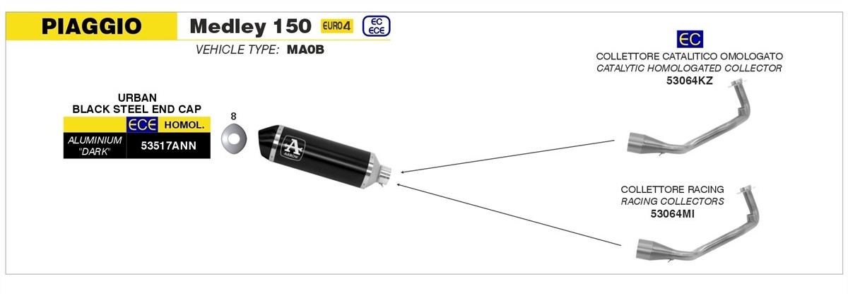 Collettori Arrow racing per scarico Urban non omologato per piaggio medley 150 16-19