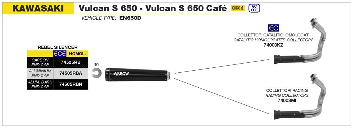 Collettori Arrow racing per Terminale di scarico Arrow Rebel non omologato per Kawasaki Vulcan 650 S 17-20