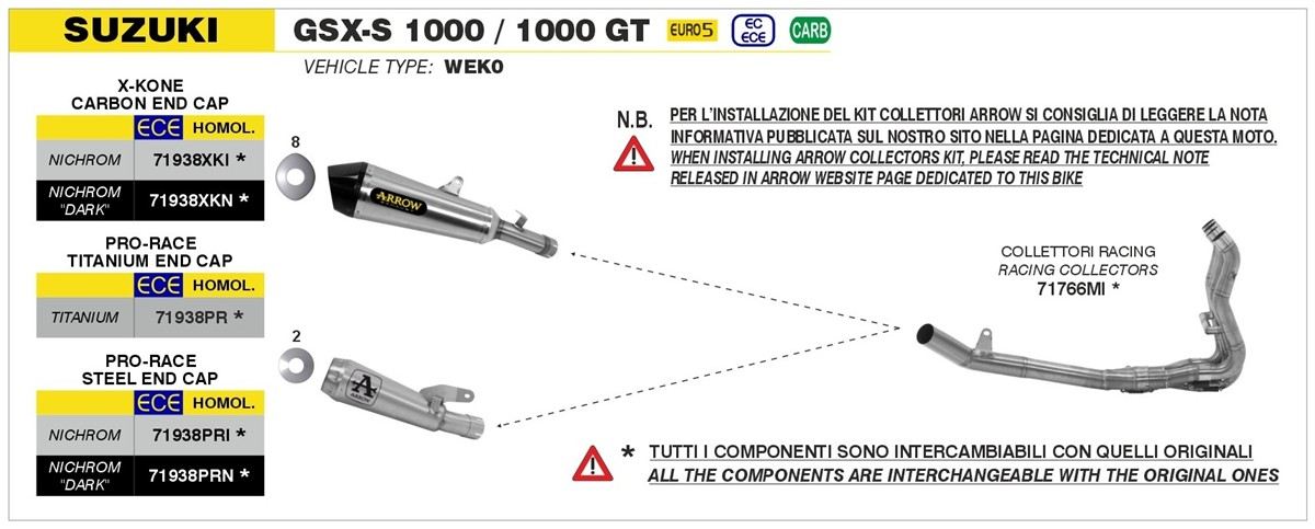 SCHEMA DI MONTAGGIO: nelle foto fare riferimento allo SCHEMA DI MONTAGGIO della propria moto (indicato in alto a sinistra: Modello - Euro - Vehicle Type) e al codice prodotto 71766MI.