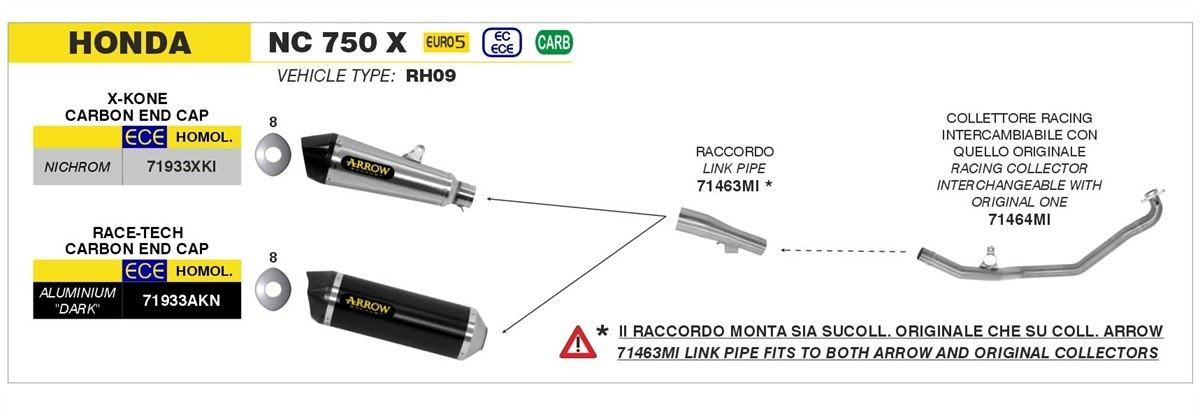 SCHEMA DI MONTAGGIO: nelle foto fare riferimento allo SCHEMA DI MONTAGGIO della propria moto (indicato in alto a sinistra: Modello - Euro - Vehicle Type) e al codice prodotto 71464MI.