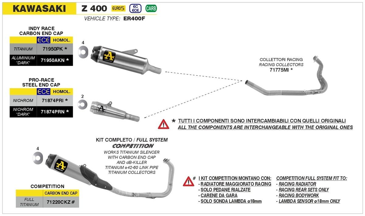 Collettori Akrapovic in acciaio inox per Kawasaki Z 500 24-25