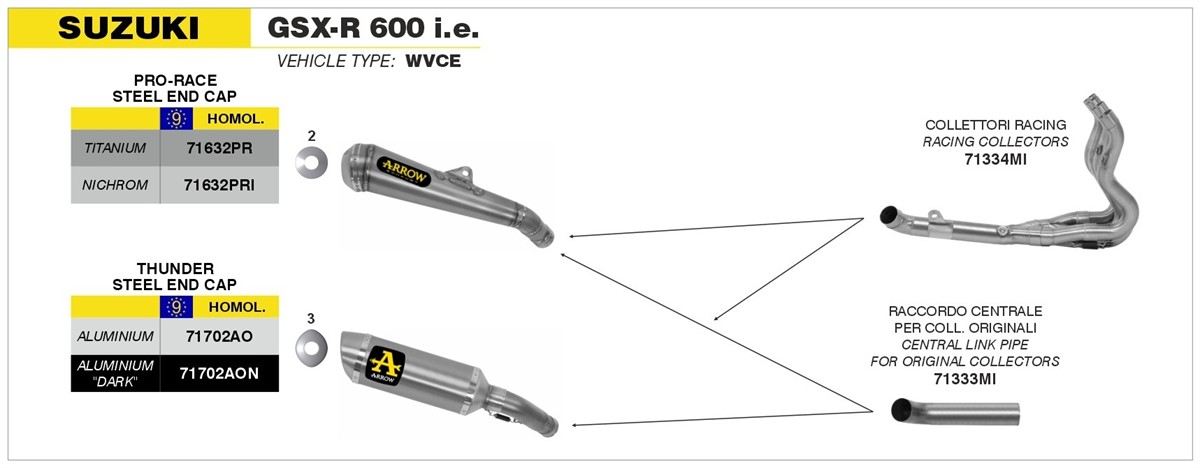 Prezzo precedente 0,00 €Raccordo per terminali Thunder per collettori Arrow Arrow per Suzuki GSX-R 750 08-10