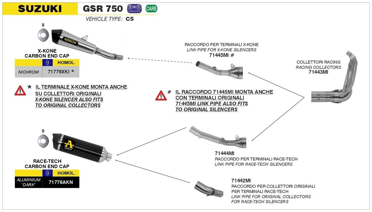 Spedizione GRATIS in ItaliaRaccordo per terminale Pro-Racing ed originale per collettori Arrow Arrow per Suzuki GSX-S 750 17-20