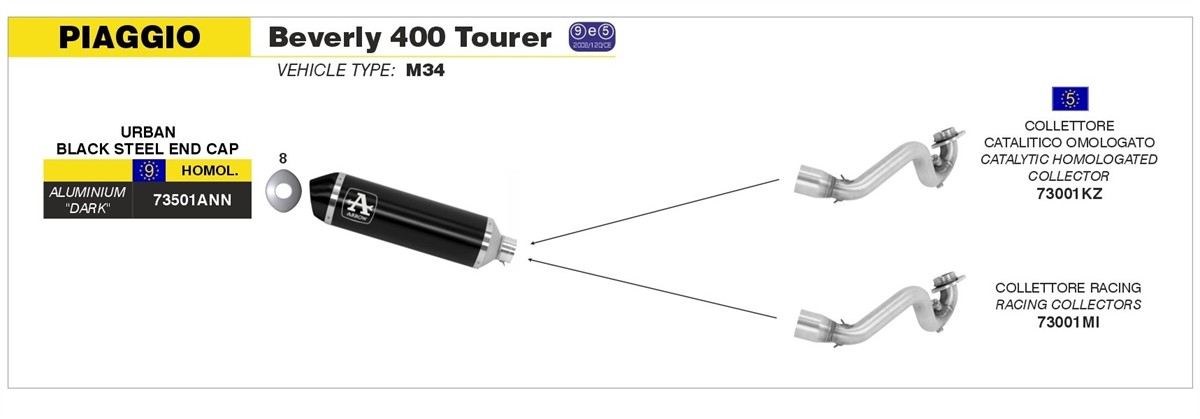 Collettori Arrow catalitico per scarico Urban omologato per Aprilia Scarabeo 500 03-12