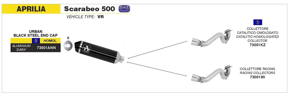 SCHEMA DI MONTAGGIO: nelle foto fare riferimento allo SCHEMA DI MONTAGGIO della propria moto (indicato in alto a sinistra: Modello - Euro - Vehicle Type) e al codice prodotto 73001MI.