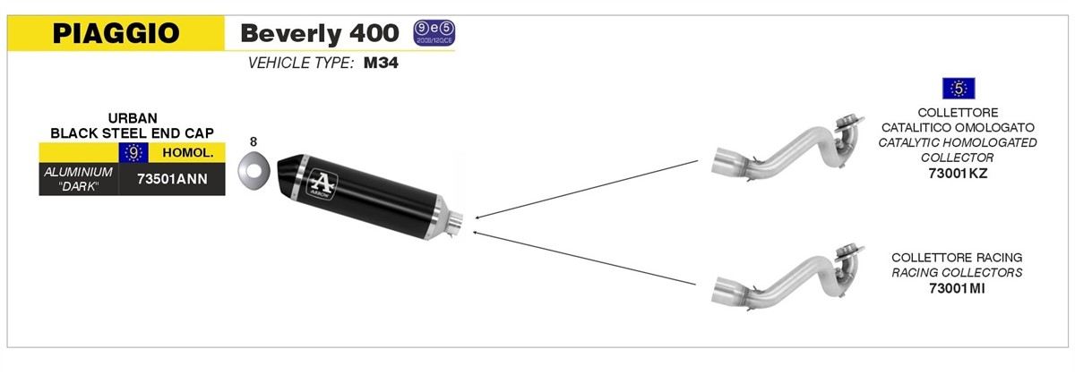 Collettori Arrow catalitico per scarico Urban omologato per Piaggio Beverly 400 Tourer 08-11