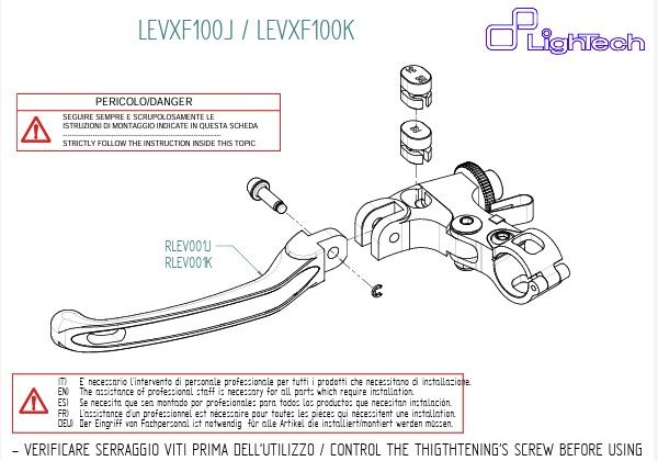 Vengono utilizzate da alcuni tra i più importanti Team in MOTOGP, MOTO2, MOTO3, WSBK e in altre competizioni per la loro leggerezza e per le loro peculiarità tecniche. Lightech propone 3 diversi modelli di leva freno e frizione. MODELLO J: versione con finitura totalmente nera; MODELLO K (ALIEN): dotato di inserti in gomma di base di colore nero (ma personalizzabili grazie ad un'ampia scelta di colori disponibili da ordinare separatamente) per un maggiore grip; MODELLO H: versione più recente, caratterizzata da un nuovo modello di geometria. Tutti i modelli di leve proposti sono pieghevoli e sono 100% MADE IN ITALY, come evidenziato dal logo con i colori della bandiera italiana posto su ogni leva. Le leve sono prodotte in magnesio e alluminio, per una maggiore resistenza ma anche per una maggiore leggerezza rispetto alle originali.