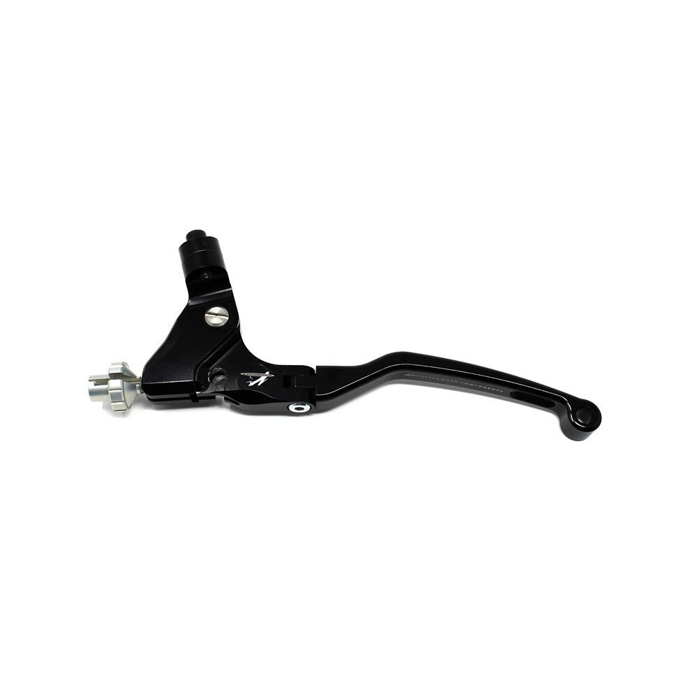 Comando frizione racing a cavo, con leva snodata. Questa comando viene utilizzato in varie competizioni sportive. Tutti i componenti sono ricavati dal pieno.