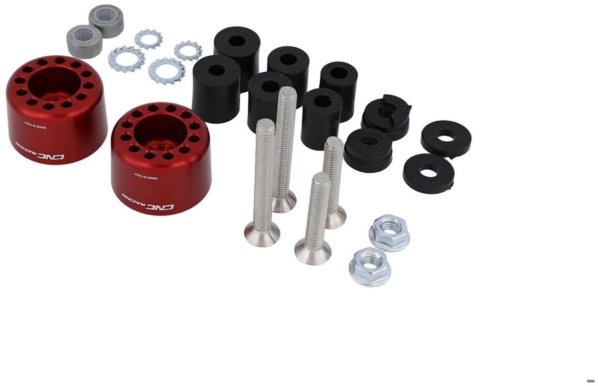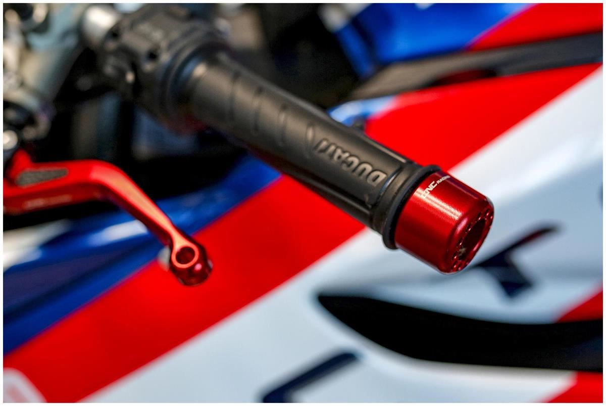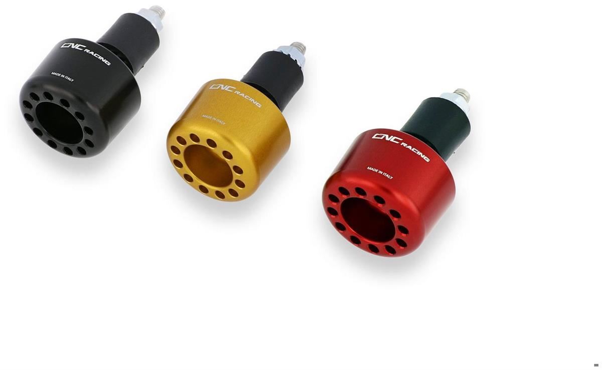 Contrappesi manubrio realizzati dal pieno in lega leggera tramite macchine CNC e successiva anodizzazione superficiale. Il kit è composto da due contrappesi che donano un estetica accattivante e racing, eliminando gli originali in plastica o ferro.