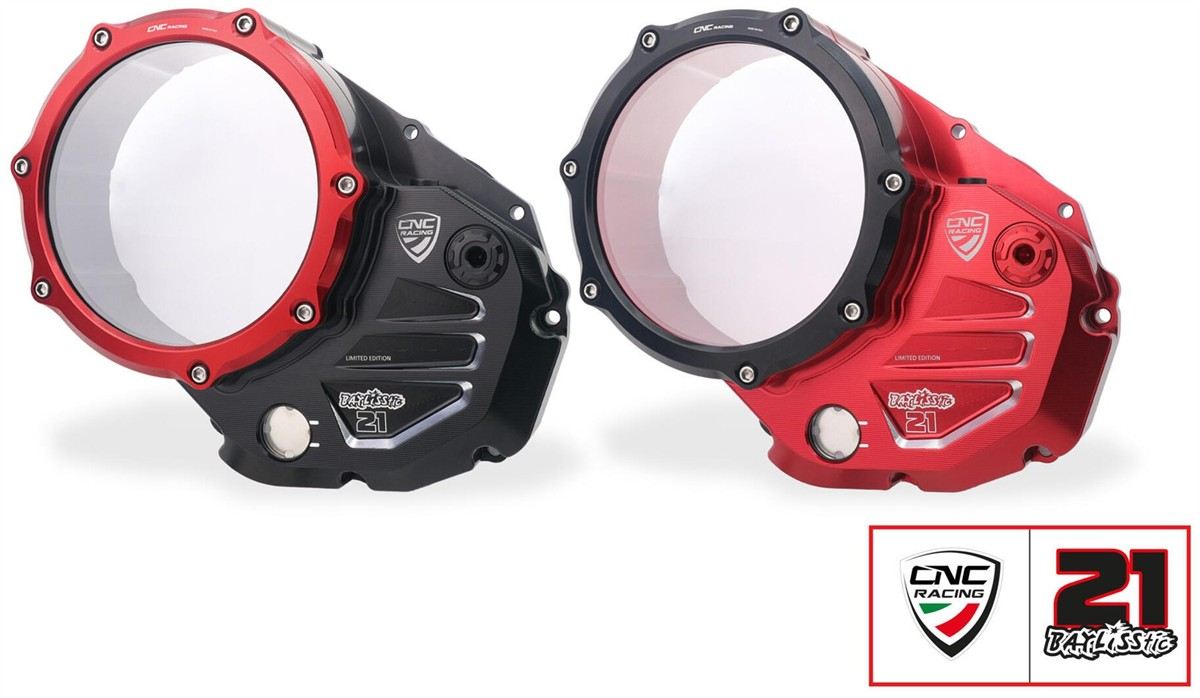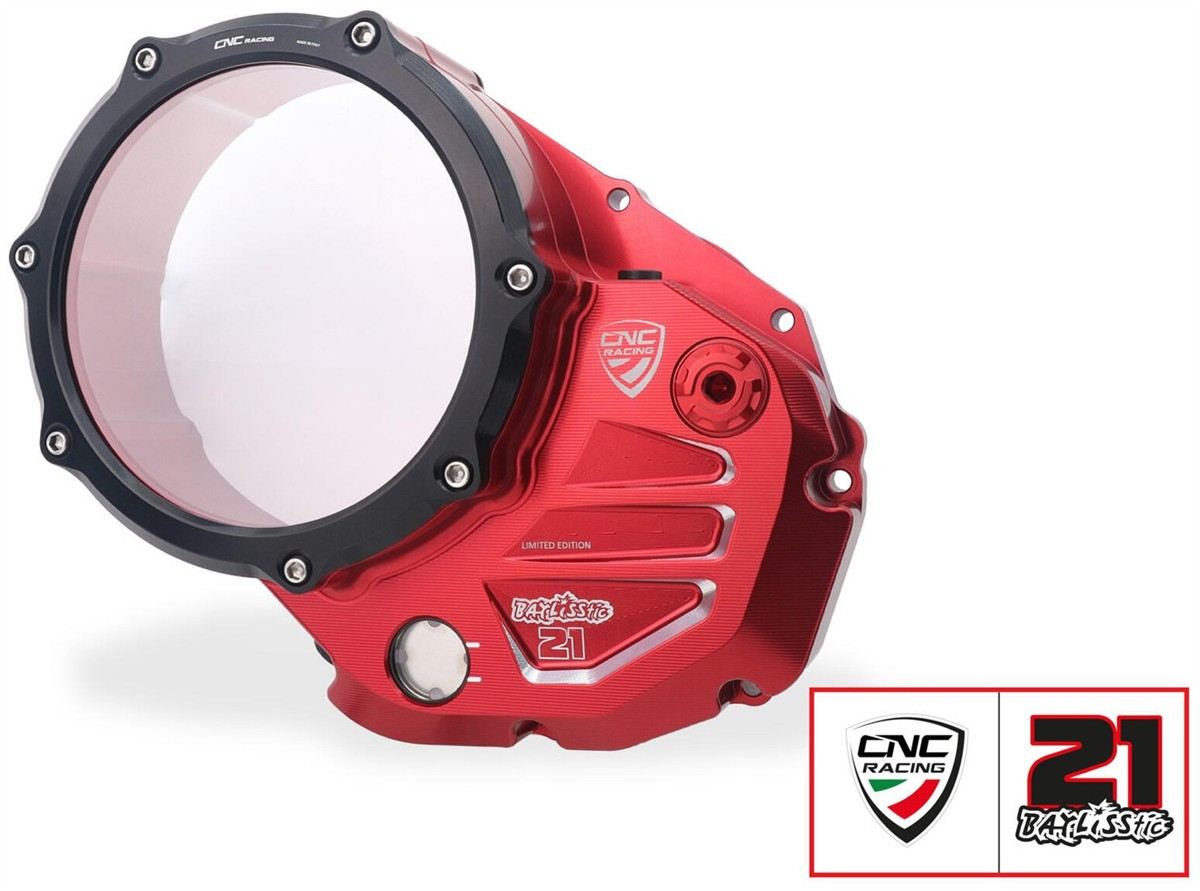 Carter trasparente per frizioni ad olio Ducati serie Panigale, realizzato in alluminio lavorato dal pieno.