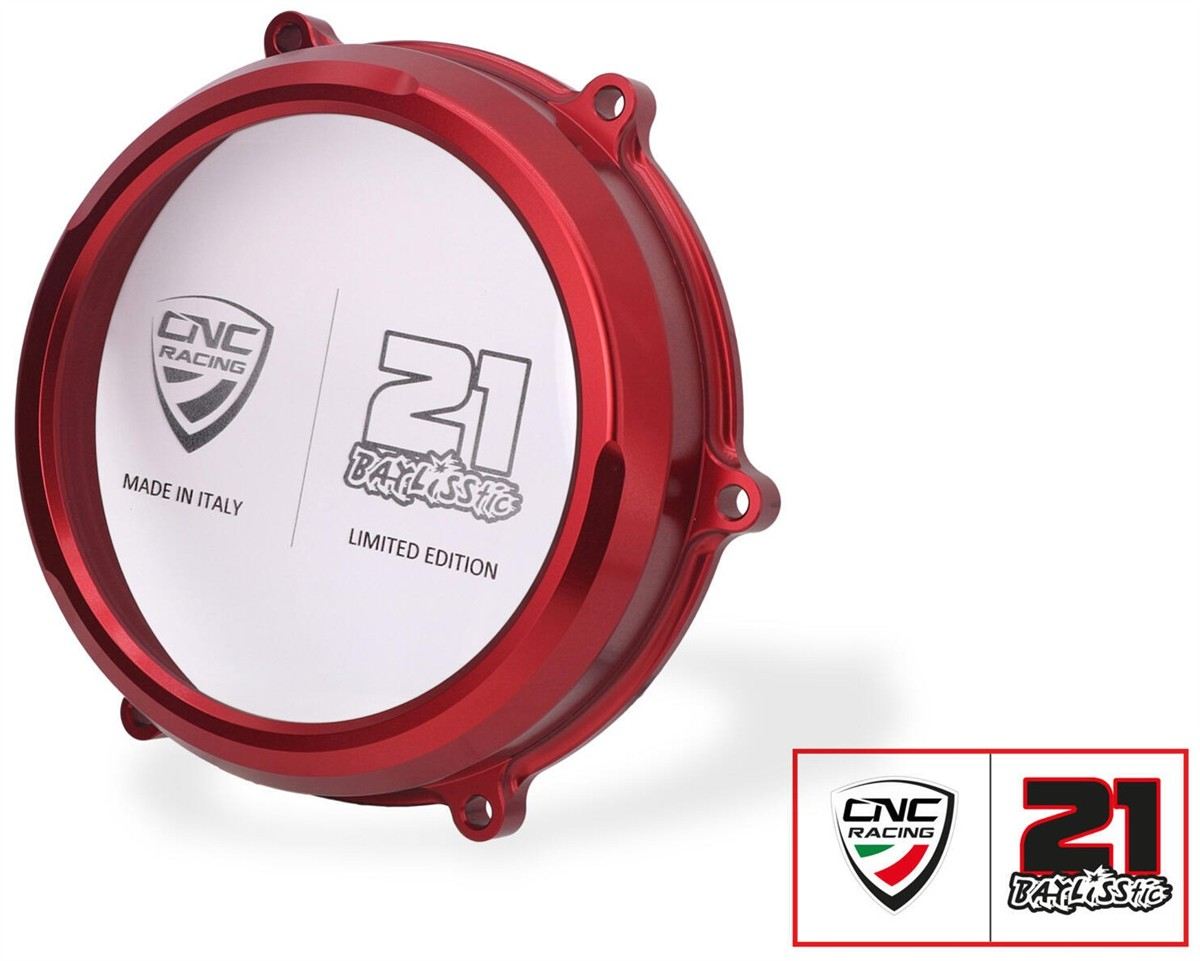 Carter trasparente per frizioni ad olio Ducati serie Panigale, realizzato in alluminio lavorato dal pieno.