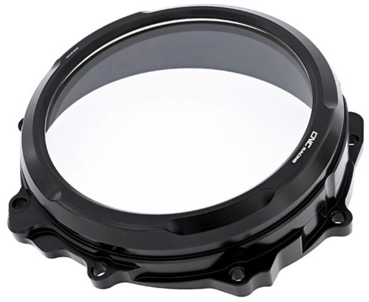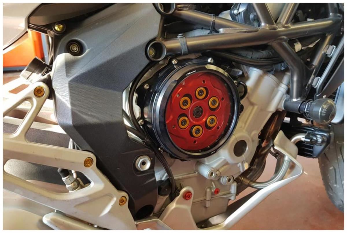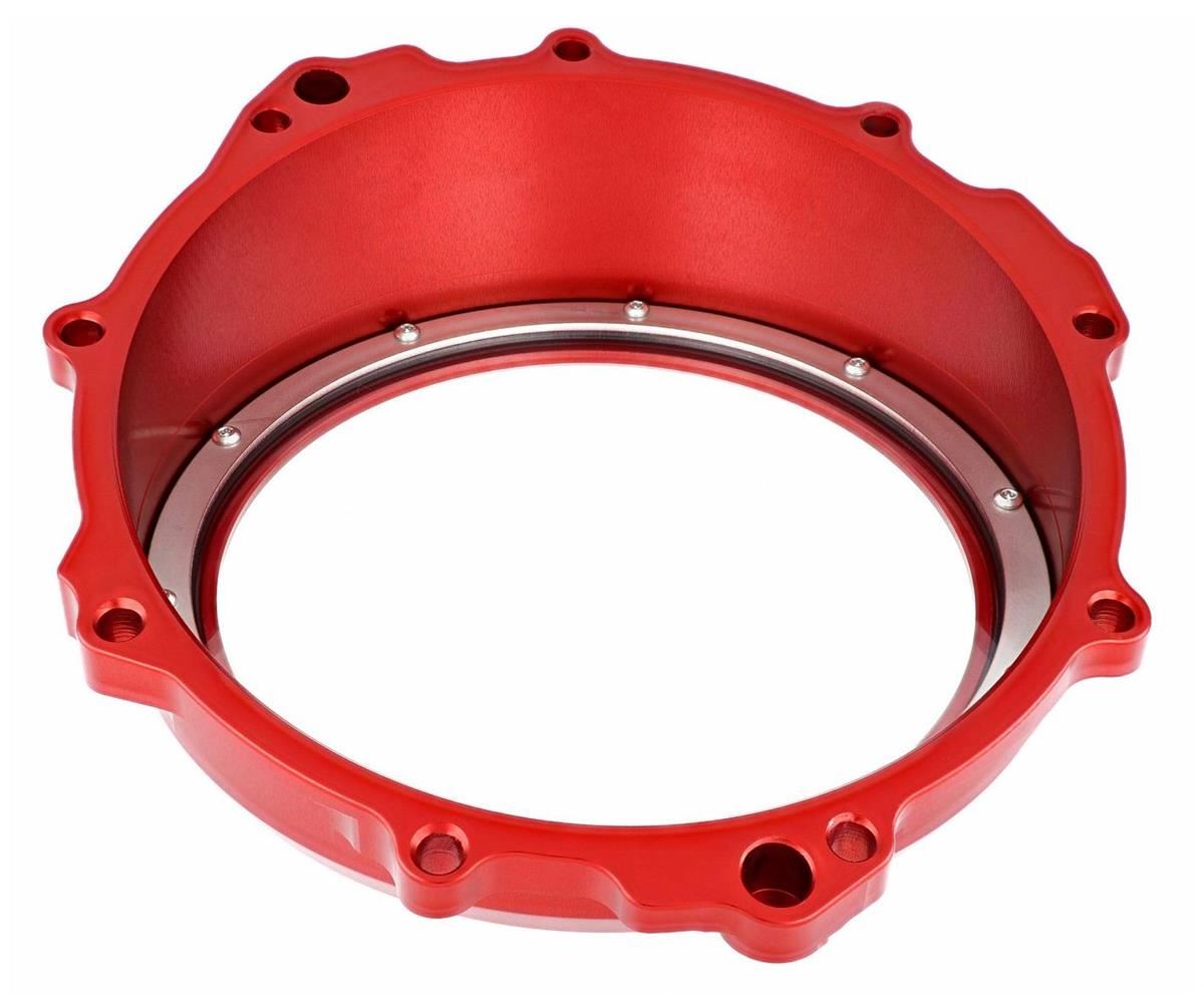Carter trasparente per frizioni ad olio MV Agusta 3 cilindri, realizzato in alluminio lavorato dal pieno.