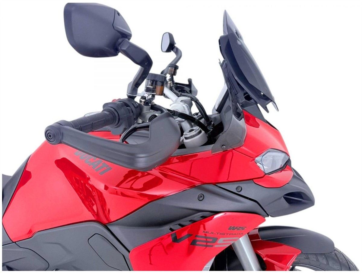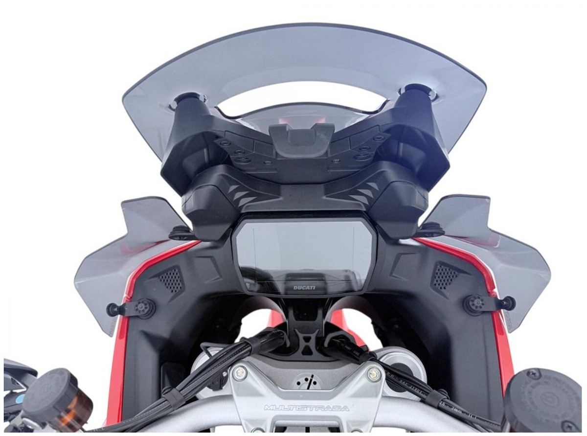 Coppia deflettori laterali per Ducati Multistrada V4 realizzati in PMMA di 3 mm per garantire robustezza e massima trasparenza.