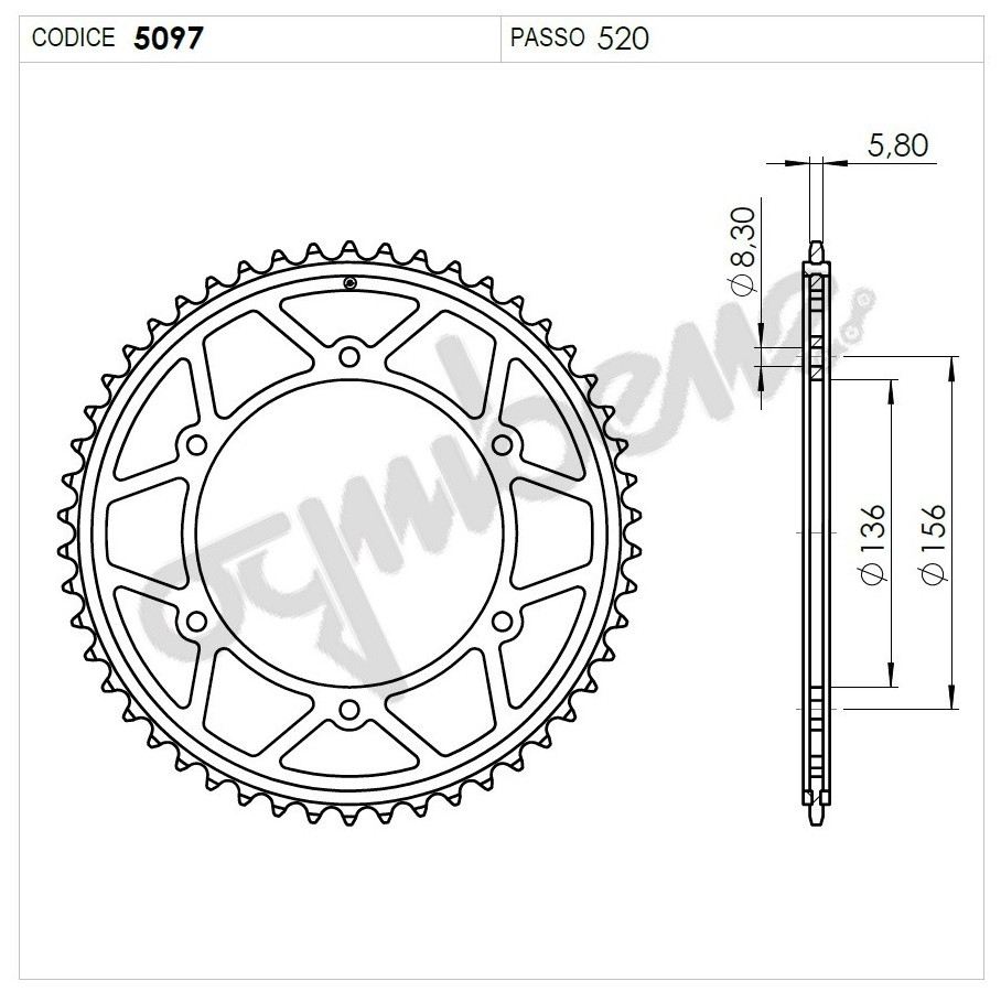 La prima foto è indicativa, mentre la seconda foto è il disegno tecnico dove sono indicate tutte le misure per confrontarle eventualmente con la corona o il pignone in proprio possesso.
