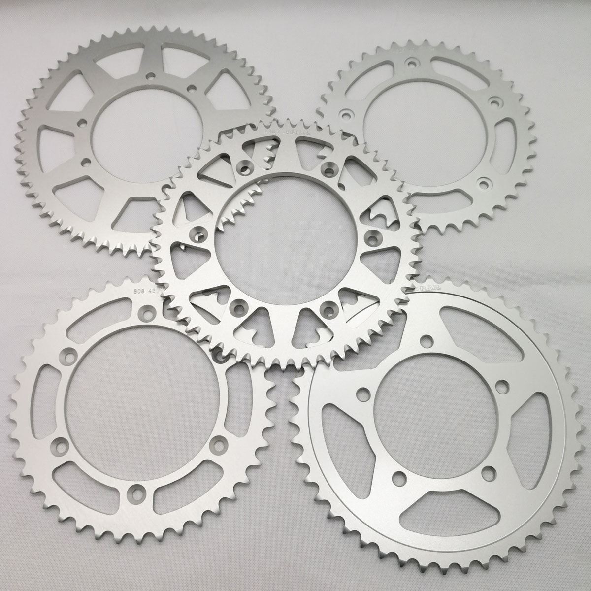 - ergal: costruite utilizzando alluminio 7075-T6 sono il massimo per chi vuole alleggerire la trasmissione e per chi vuole un accessorio veramente da intenditore. Il peso della corona in ergal rispetto all'acciaio è inferiore alla metà, mentre la sua durata è circa 2/3. Vengono fornite abitualmente in colore ergal naturale (argento) oppure su richiesta in vari colori. In alcuni casi, possono ricevere un ulteriore trattamento di anodizzazione dura che aumenta notevolmente la durezza e quindi la resistenza all'abrasione ed alla corrosione. Chiedere per conoscere i tempi di attesa e il sovraprezzo per l'anodizzatorura colorata o dura.