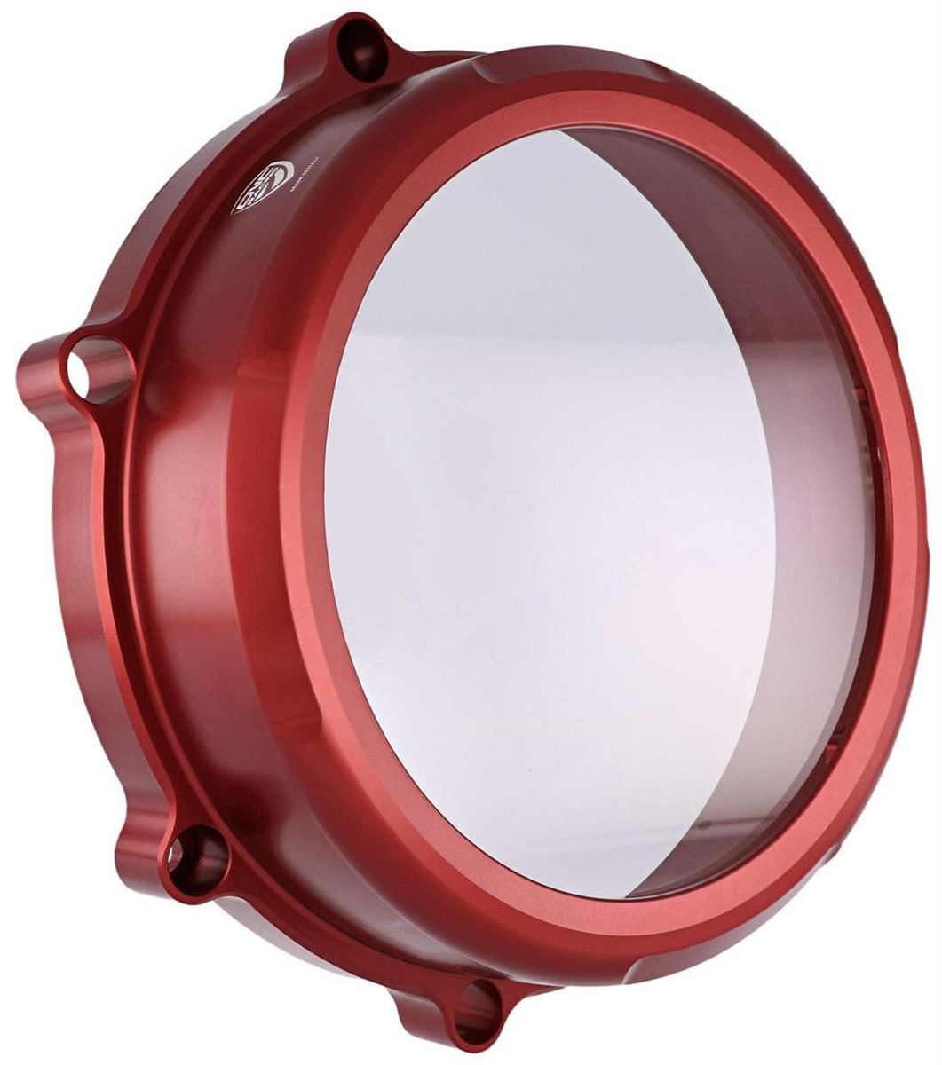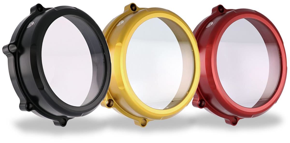 Carter trasparente per frizioni a secco Ducati realizzato in alluminio lavorato dal pieno.