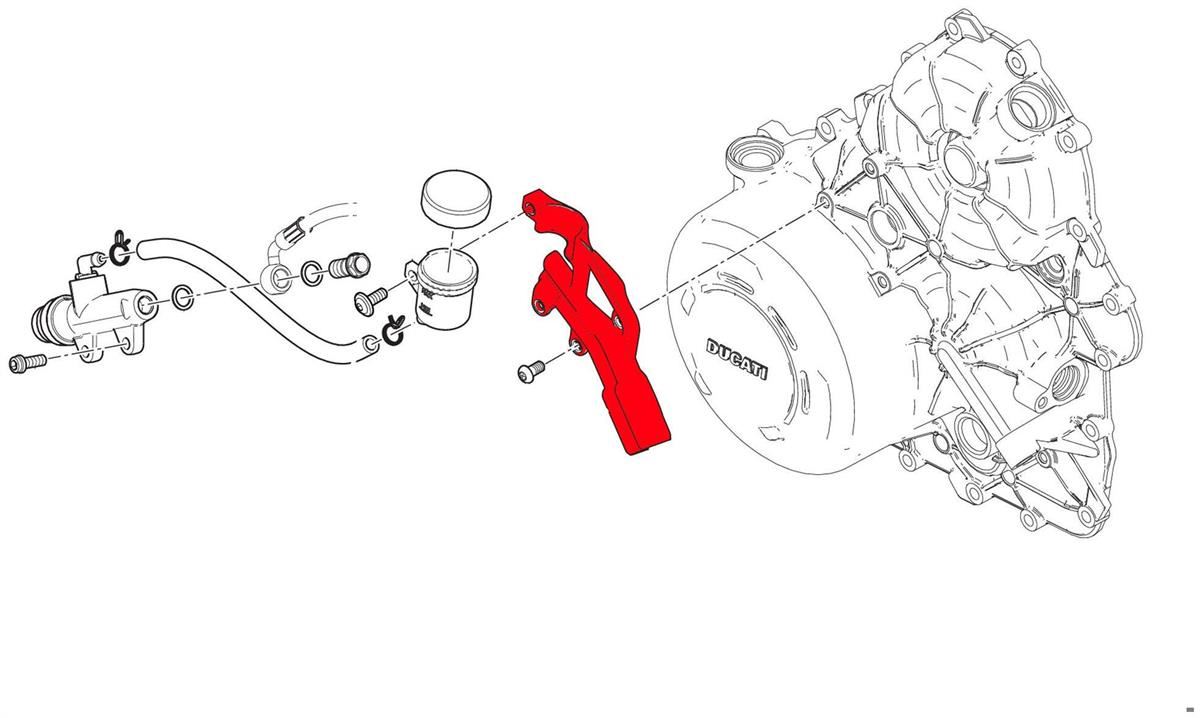 Cover tubazioni freno posteriore con supporto serbatoio fluido realizzata dal pieno in lega leggera con successiva anodizzazione superficiale.