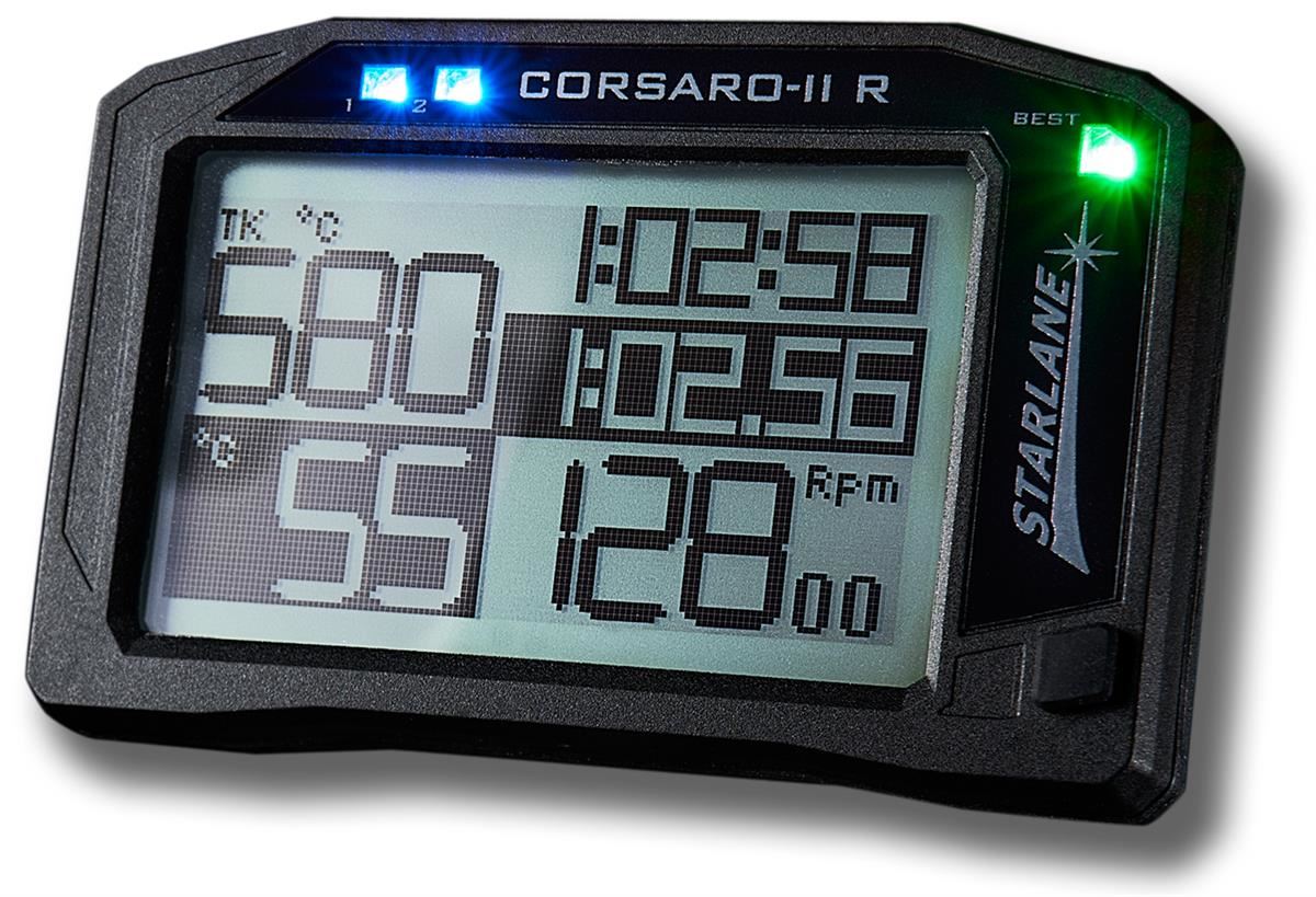 l'utilizzo del sistema GPS+GLONASS+GALILEO per il rilevamento del tempo sul giro rende CORSARO-II R totalmente autonomo senza necessitare di riferimenti a bordo pista come i trasmettitori utilizzati dai sistemi di vecchia generazione basati sull' infrarosso.
