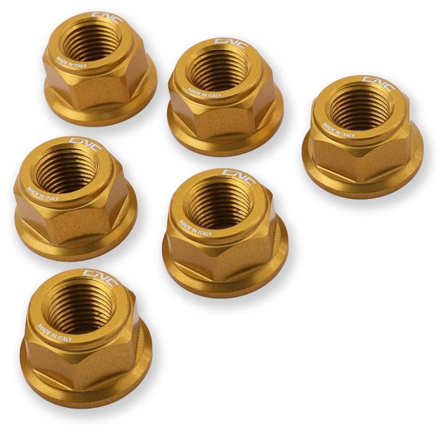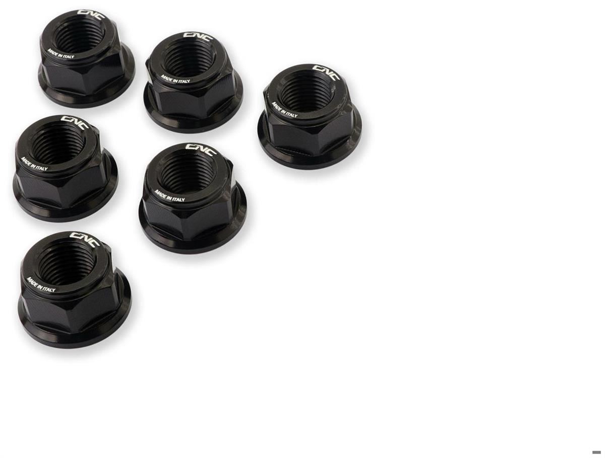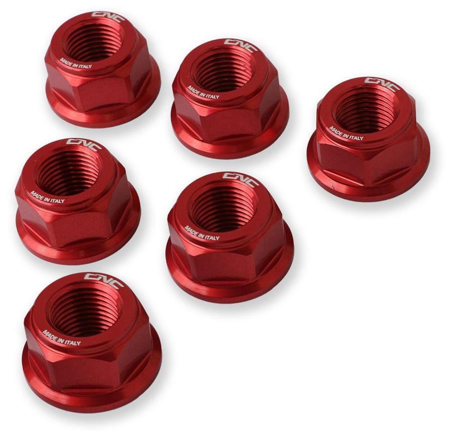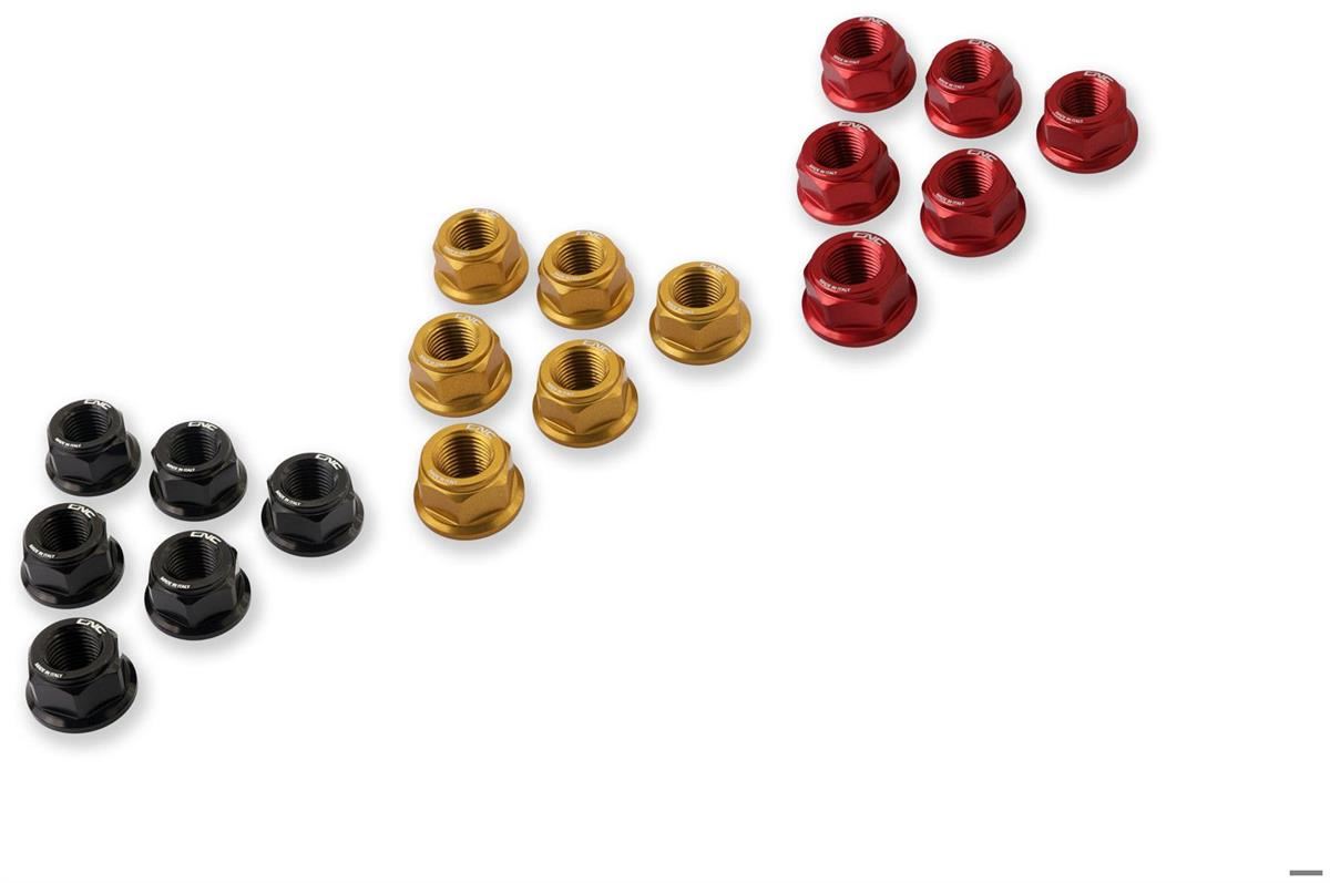 Dadi corona realizzati dal pieno in lega leggera tramite macchine CNC, e successiva anodizzazione superficiale. Non necessitano modifiche per il montaggio.