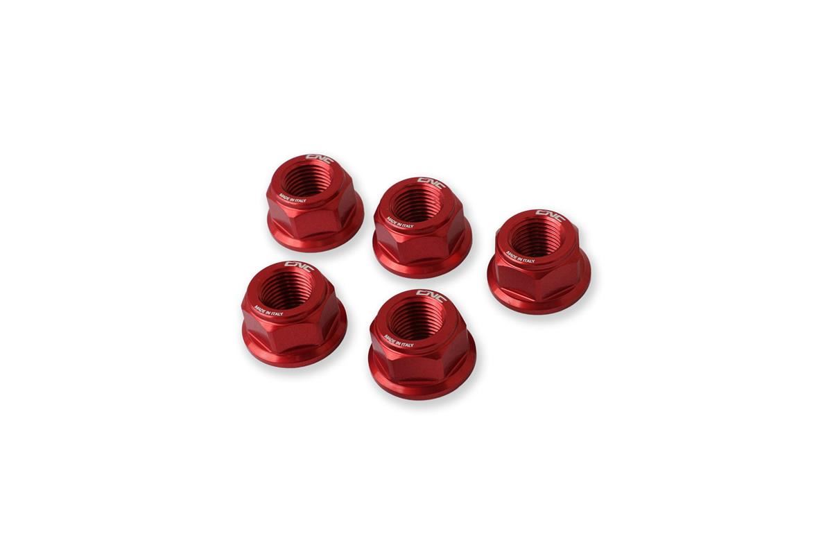 Dadi flangia portacorona lavorati dal pieno in lega leggera con successiva anodizzazione superficiale.