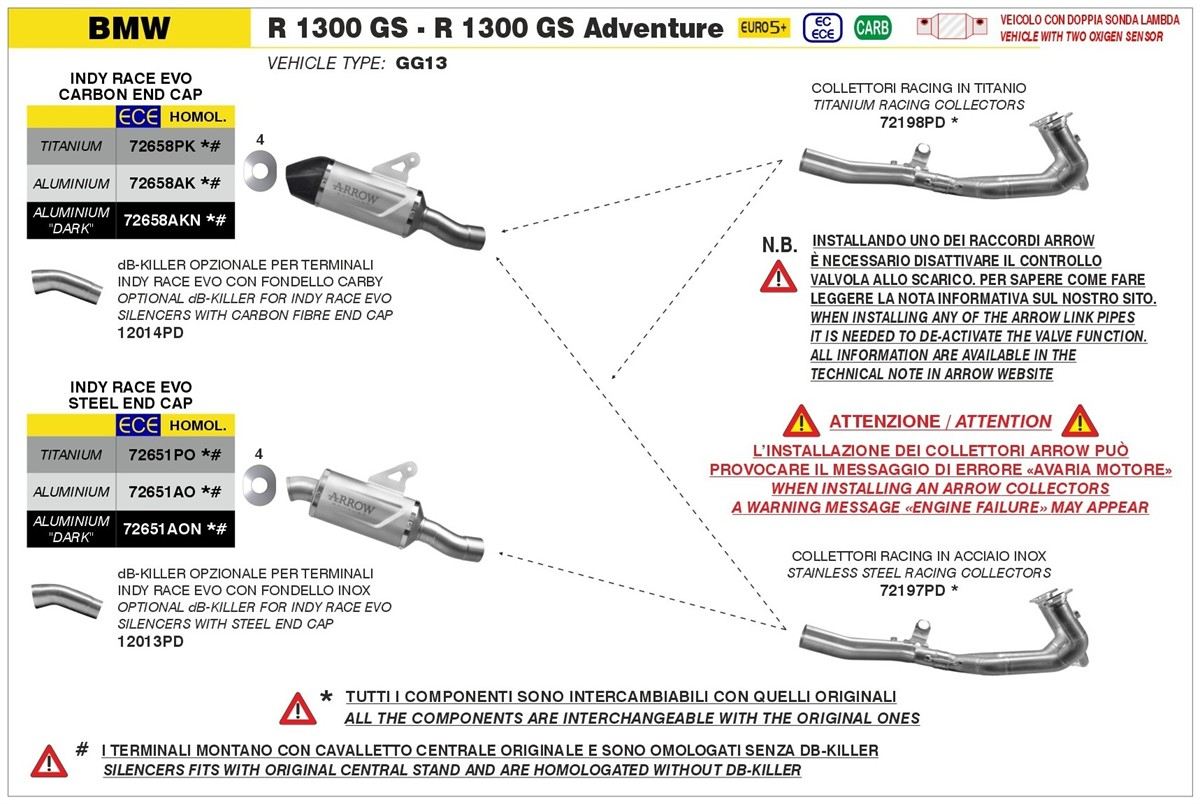 dB-Killer per Terminale di scarico Arrow Indy Race EVO con fondello carby per BMW R 1300 GS Adventure 24-25
