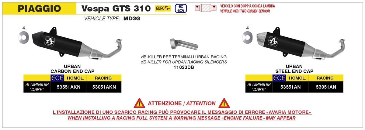 SCHEMA DI MONTAGGIO: nelle foto fare riferimento allo SCHEMA DI MONTAGGIO della propria moto (indicato in alto a sinistra: Modello - Euro - Vehicle Type) e al codice prodotto 11023DB.